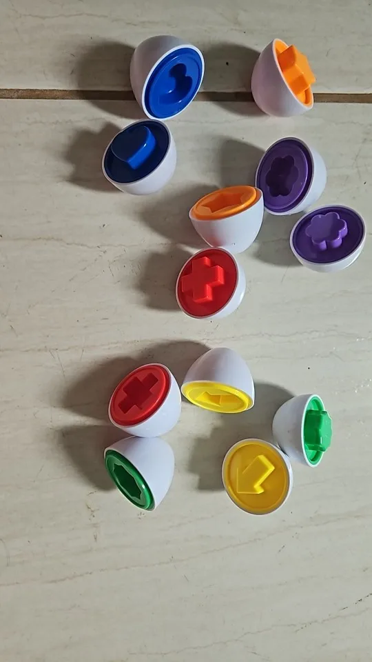 Each egg features a unique geometric shape and color, nestling neatly into matching cups so children can learn by sorting, matching, stacking, and discovering. Whether you choose the 6-piece or 12-piece set, young explorers will develop shape recognition, hand-eye coordination, and a growing sense of independence as they master each pairing and placement.